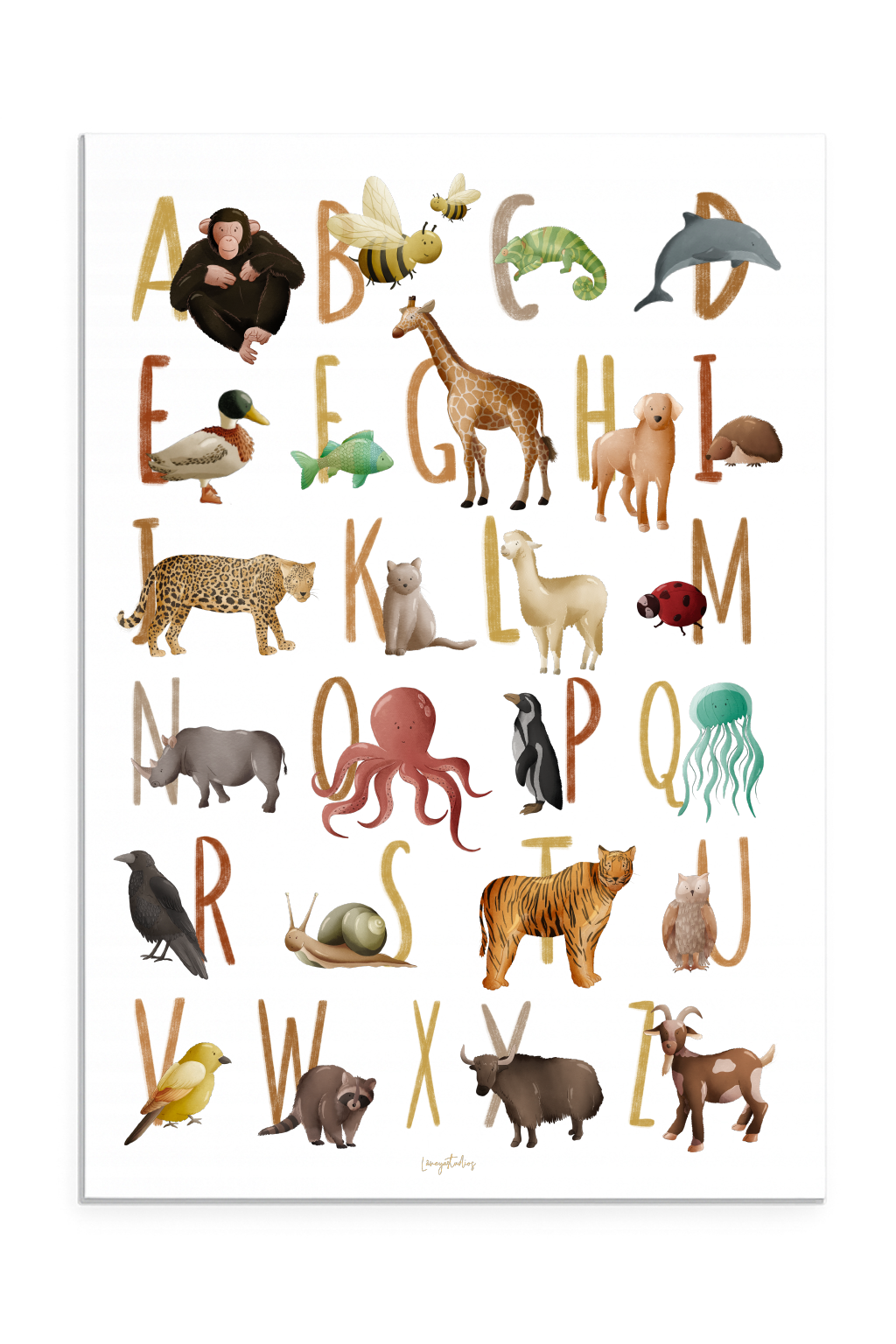 - Design: Handillustriertes Alphabet mit Tiermotiven