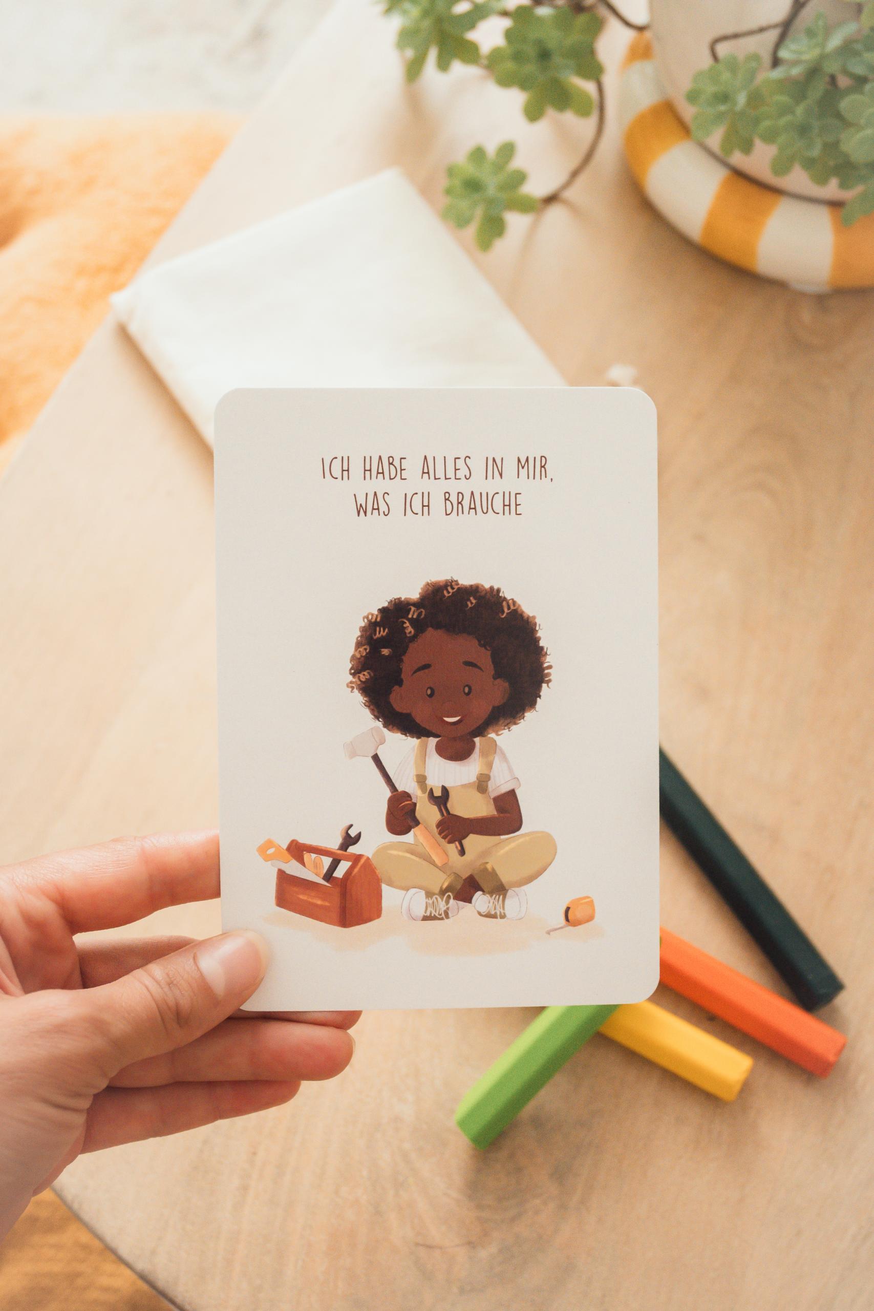 Dieses liebevoll gestaltete Affirmationskarten-Set begleitet Kinder mit stärkenden Botschaften durch ihren Alltag.