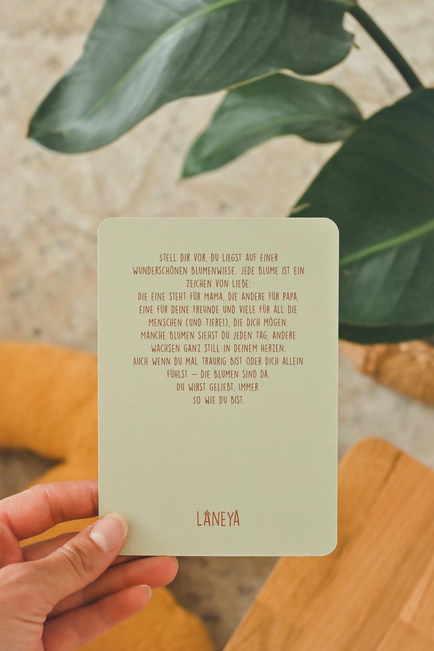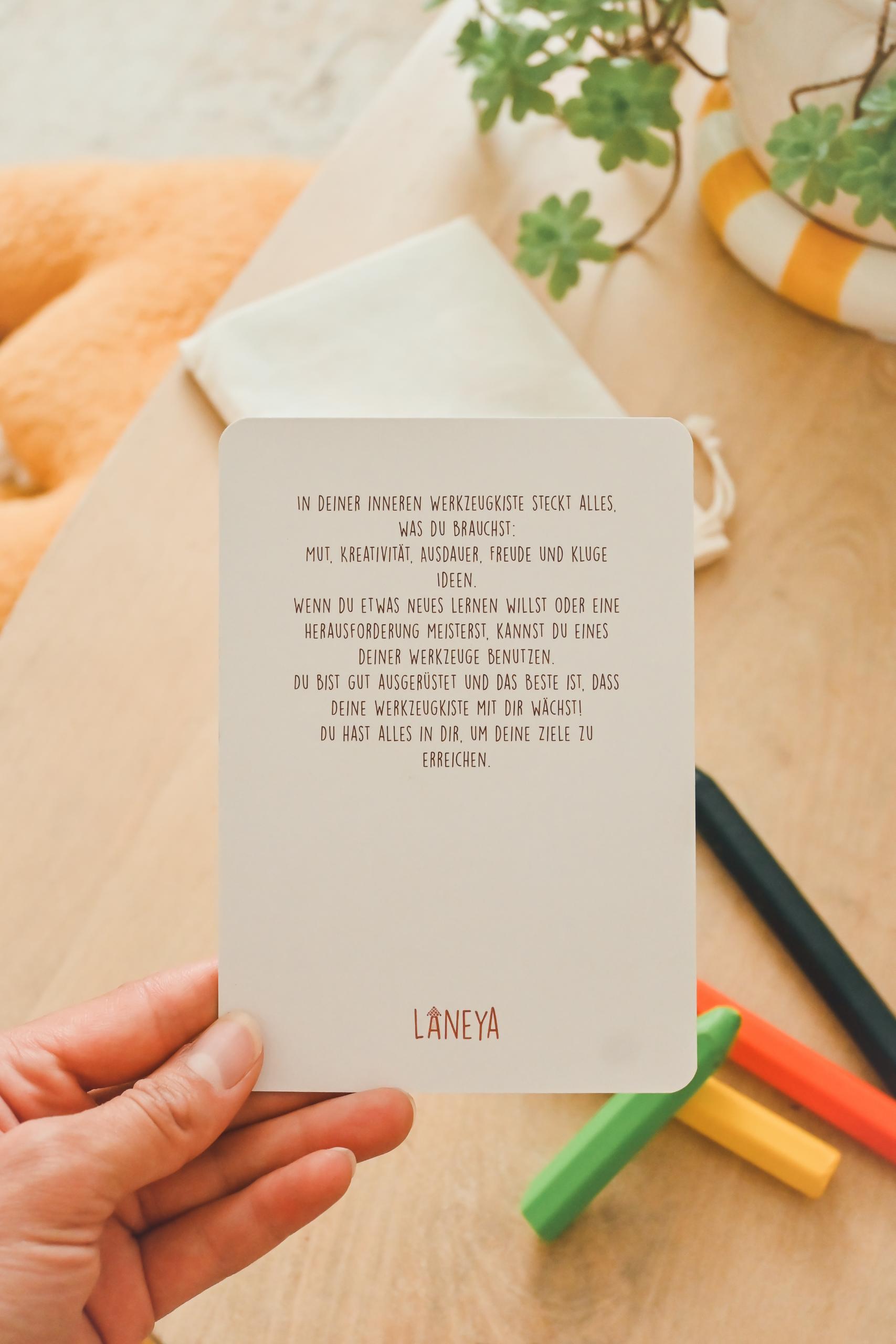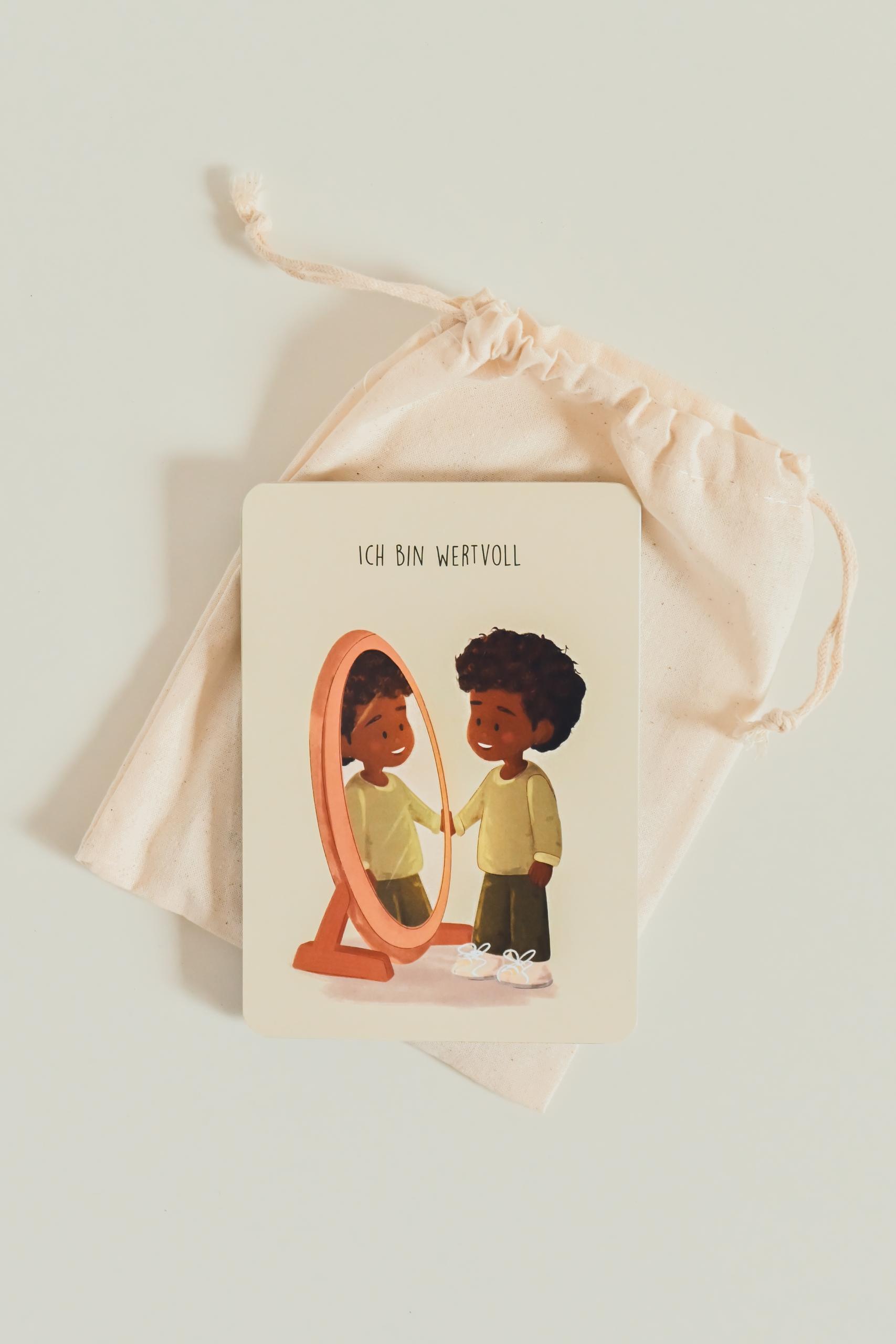 Jede Karte ist handillustriert und greift eine kindgerechte Metapher auf. Auf der Rückseite wird diese in einfachen Worten erklärt, sodass Kinder die Bedeutung der Affirmation besser verstehen und in ihren Alltag übertragen können. So entstehen kleine, wertvolle Momente der Reflexion, des Gesprächs und der Bestärkung.