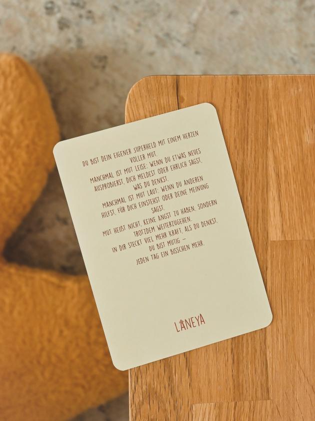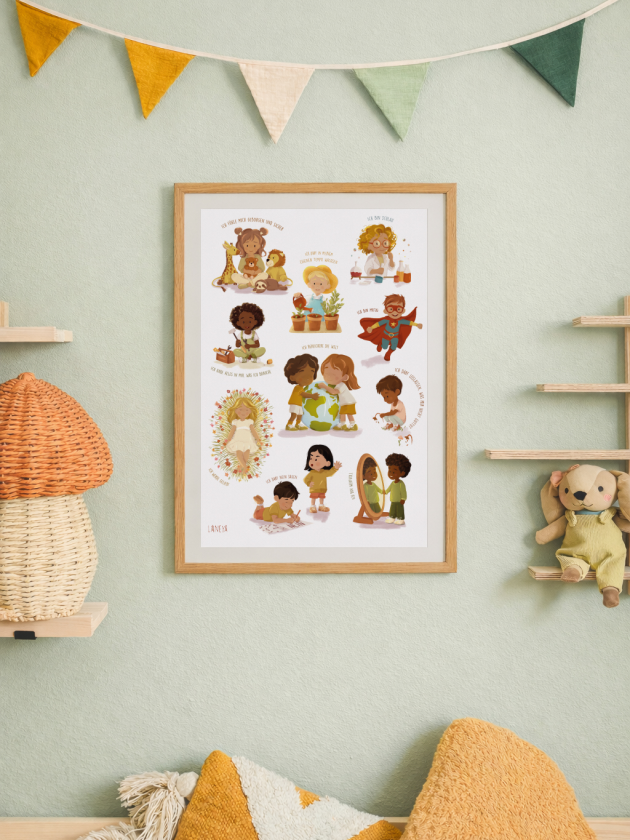 Durch das ruhige, harmonische Design fügt sich das Poster sanft in den Alltag ein. Es eignet sich ideal für das Kinderzimmer, den Spielbereich oder Lernräume und wirkt unterstützend, ohne zu überfordern. So entstehen kleine, stärkende Momente, die Kinder langfristig begleiten können.