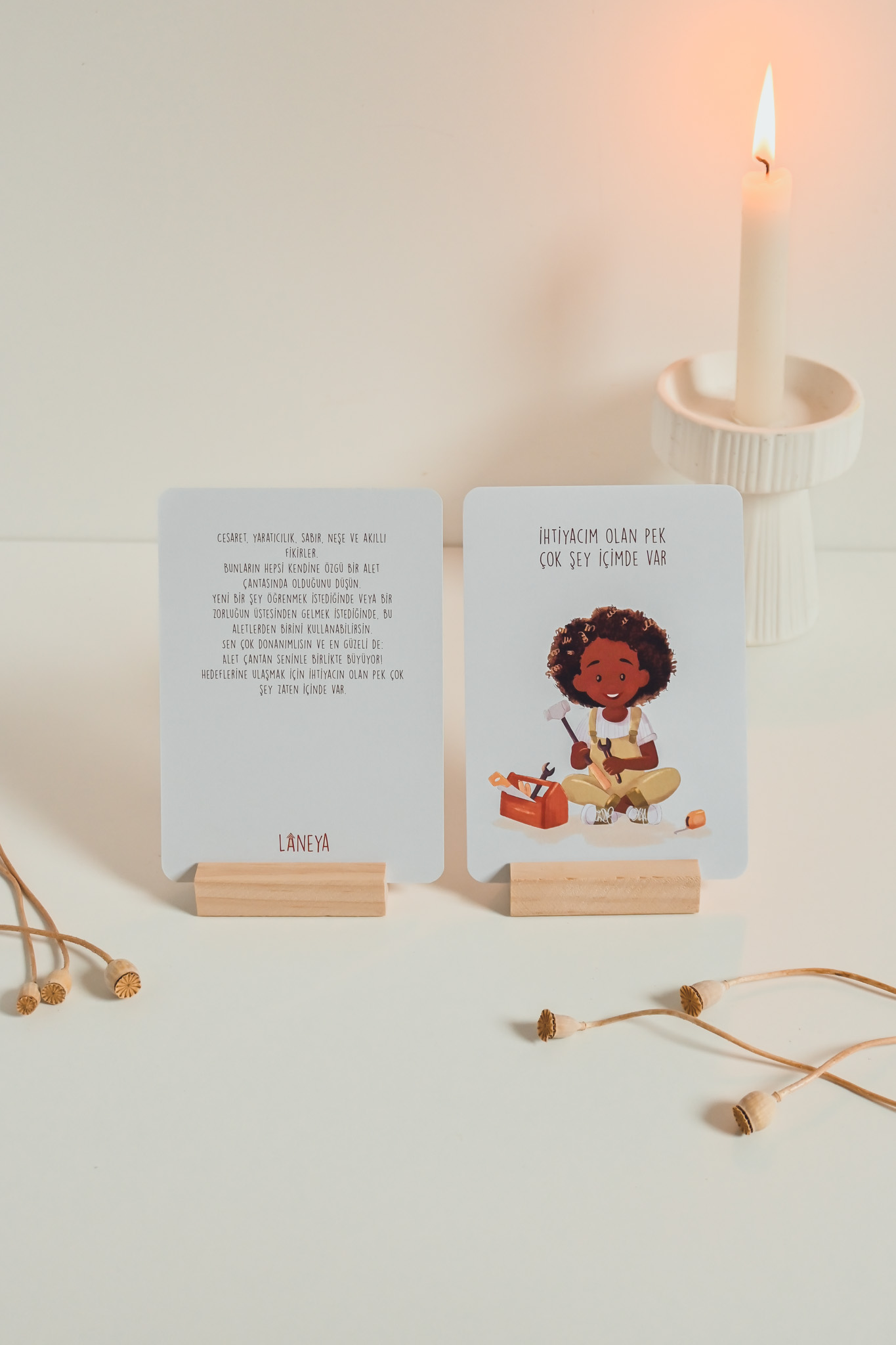 Die Karte ist handillustriert und greift eine kindgerechte Metapher auf. Auf der Rückseite wird die Affirmation in einfachen Worten erklärt, sodass Kinder die Bedeutung besser verstehen und auf ihren eigenen Alltag übertragen können. Dadurch entstehen kleine, wertvolle Momente des Gesprächs, der Reflexion und der Bestärkung.