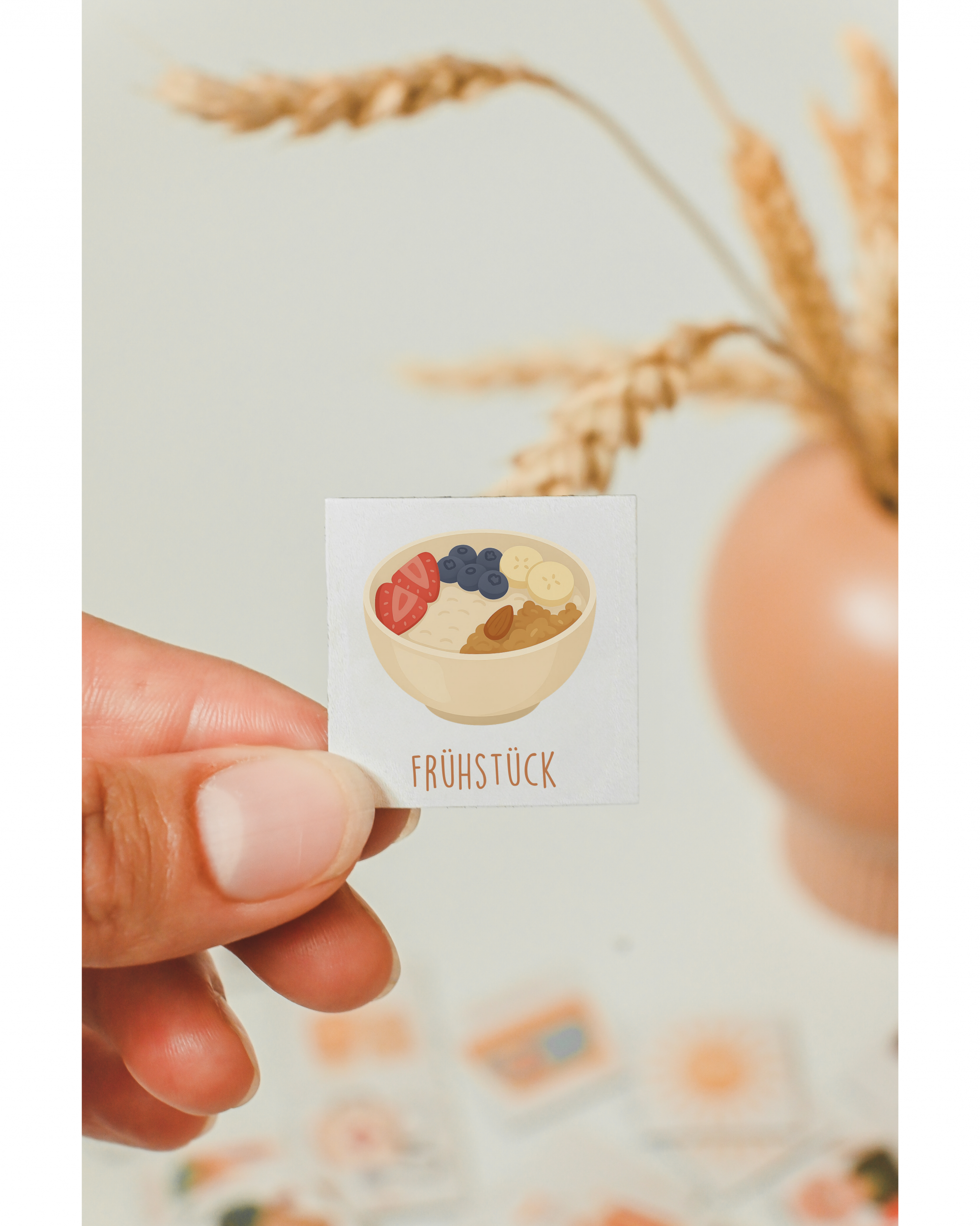 Jedes Symbol ist handillustriert und zeigt eine klare, kindgerechte Bildsprache. So lassen sich Abläufe, Termine und Routinen visuell darstellen und für Kinder leichter verständlich machen. Besonders bei Veränderungen im Alltag oder neuen Situationen kann ein zusätzliches Symbol dabei helfen, Orientierung und Sicherheit zu geben.